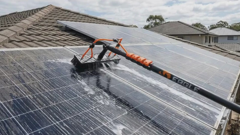 Wil je maximaal wekken? Dan zul je moeten wassen. Maar: ga niet gevaarlijk met een ladder in de weer. Met de Eagle Extend telescoopsteel reinig je jouw zonnepanelen veilig vanaf de grond, met het resultaat van een professional.