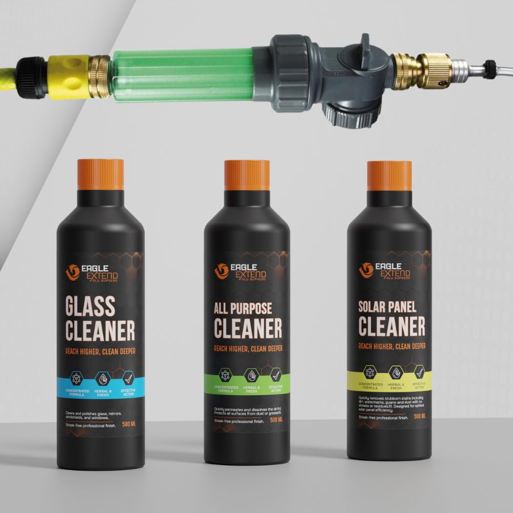 Reinig sneller, hoger en slimmer met de Eagle Extend® telescoopsteel aluminium Supreme, uitgerust met het innovatieve HexaLock® 1-klik systeem. Hiermee wissel je accessoires binnen één seconde, zonder gedraai of speling. Dankzij het krachtige uitschuifsysteem bereik je moeiteloos grote hoogtes en maak je ramen, zonnepanelen, rolluiken, gevels, campers en houtwerk streeploos schoon. De professionele borstel en verstelbare hoekadapter geven je perfecte controle op elke werkhoek. Sluit ’m eenvoudig aan op je tuinslang en je kunt direct beginnen — maximale kracht, gemak en premium kwaliteit met Eagle Extend®.
